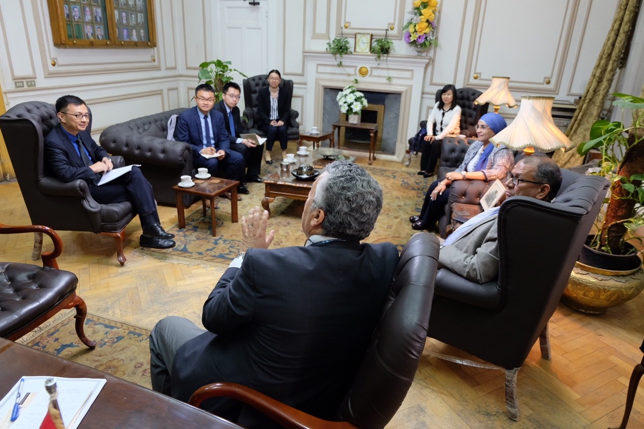 团队第二站参访了开罗大学人文学院。学院院长艾哈迈德•沙尔比尼(Ahmed El-Sherbini)和中文系系主任、孔子学院阿方院长李哈布(Rehab)接见了团队师生。双方表示愿意在既有的合作基础上,发挥各自的语言及学科优势,进一步扩展开罗大学人文学院和中欧网页版登录入口间的学术合作与人员交流。